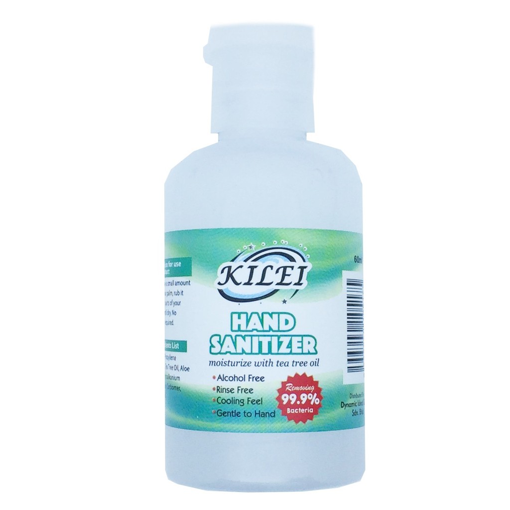0 items-RM 000-RM 000. Conveniently cleansing your hands and eliminating 999- of harmful bacteria the Kilei Hand Sanitizer gel provides care and moisture to your skin. Kilei Hand Sanitizer Removes 999 bacteria Alcohol free NO alcohol Moisturize with tea tree oil 60ml each If require more quantity feel free to message us Welcome to NOKO Malaysia where we strive to provide our customers an array of products.